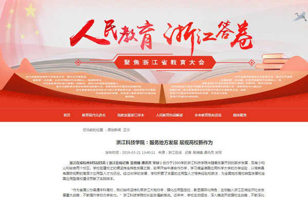 今年1月,浙江省委省政府正式发布《关于全面实施高等教育强省战略意见》。《意见》明确提出“引导不同高校科学定位,办出特色、壮大优势、建设一流。”浙江科技学院党委书记龚建立教授说:“这给我们这样的地方高校注入了特色发展和高水平发展的强大动力。机遇前所未有,我们要不忘初心,牢记使命,扎根浙江大地,始终将建设特色鲜明的现代化应用型大学作为坚持不懈努力奋斗的战略目标。”