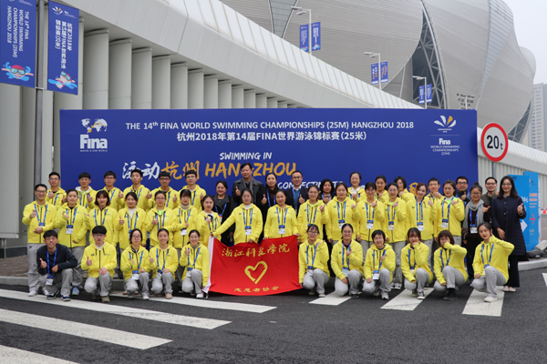 12月6日至18日,我校共派选6名老师和149名学生赴第14届FINA世界游泳锦标赛(25米)担任志愿服务工作,他们在各自岗位上展现浙科学子“奉献 友爱 互助 进步”的志愿精神。