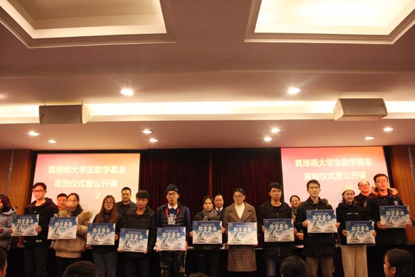 12月20日,真维斯大学生助学基金发放仪式暨公开课活动在我校举行。校长赵东福、省青少年发展基金会副理事长张春燕、浙江真维斯服饰有限公司副总经理沈森杨出席仪式。浙江理工大学学工部负责人、我校相关职能部门和二级学院负责人、辅导员、78名受助学生参加了真维斯助学金发放仪式。