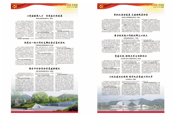 《奋进》特刊系统回顾了校党委带领全校师生砥砺奋进的五年。其中,封面配发评论,鼓舞全校师生同心同德、改革创新、再创辉煌。2版对学校历次党代会进行回顾;3-8版图文并茂,系统梳理过去五年学校在党的建设、思政、人才培养、科研学科、国际合作等方面取得的喜人成绩;9-14版邀请二级党组织负责人畅谈5年来各基层党建实践探索与工作经验,15版介绍本次党代会筹备工作情况。封底号召全校师生为高水平建设社会主义的九州体育平台中国有限公司,而努力奋斗!