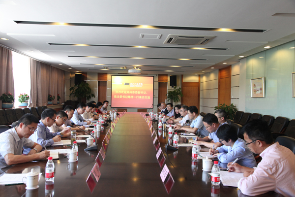会前,陈浩一行在我校相关人员陪同下参观了学校中德合作馆、3D光学与深度感知技术实验室、大数据实验室、浙江省废弃生物质循环利用与生态处理技术实验室等,听取有关项目介绍。