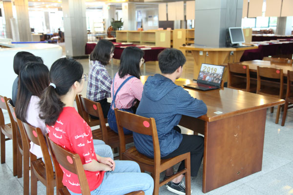 图3:学生在图书馆收看国庆庆祝活动直播