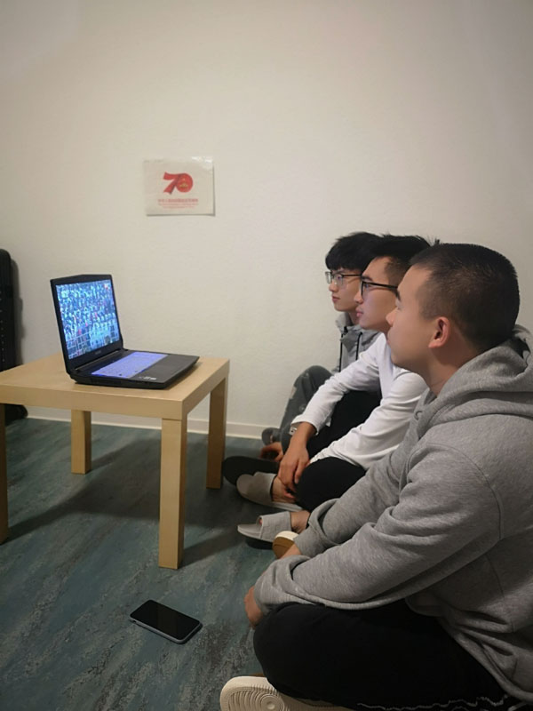 图2:奥斯特法利亚应用科技大学学生党员收看阅兵直播