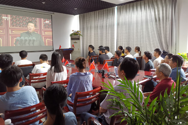 10月1日,庆祝中华人民共和国成立70周年大会引举世瞩目,我校师生在会议室、实验室、图书馆等地收看阅兵式电视直播,不少在国外交流的学生也通过网络观看直播,共同感受中华人民共和国成立70年的辉煌成就,祝福伟大祖国繁荣昌盛。