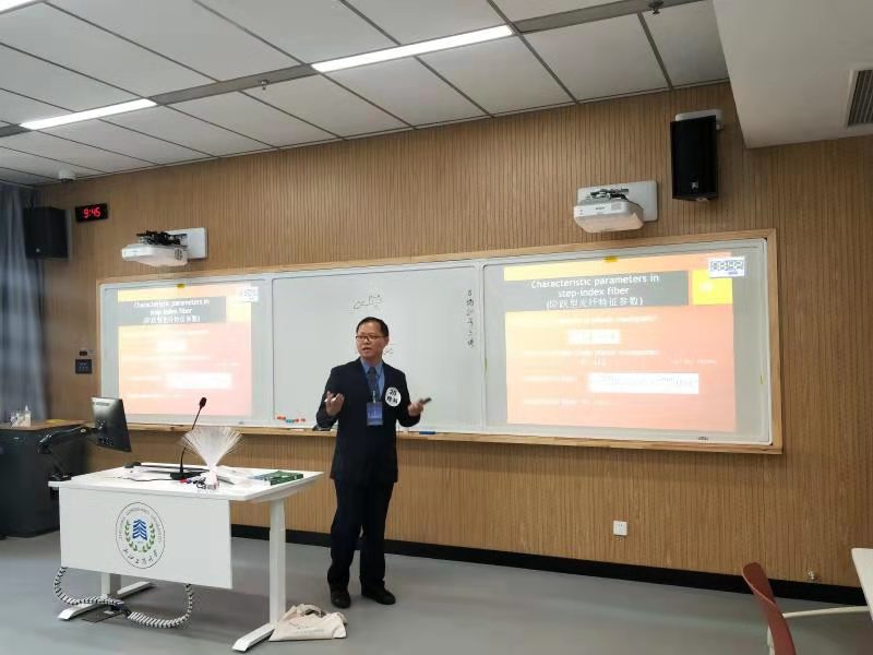 和中国学生相比,来自不同国家的留学生数理基础相互不均衡,思维也比较活跃,为留学生上物理课怎么上?黄喆老师有办法。比如上《光电子学》课讲到“量子效率和响应度”,黄老师先带同学回顾之前所学知识,回忆有哪些光电材料,各有什么特性,导引到那节课的主题。针对留学生好奇心强的特点,黄老师又布置了课外作业,请他们对实际光电检测器性能进行探讨。
