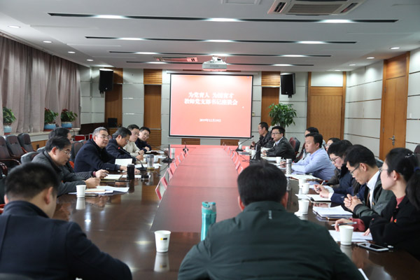 12月19日,学校党委召开教师党支部书记座谈会,校党委书记龚建立出席并讲话,校党委副书记符宁平主持会议。