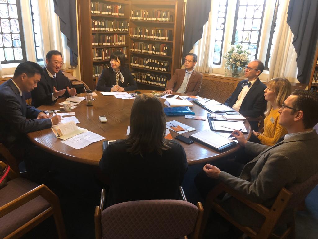 在美国,代表团一行与日内瓦大学校长、副校长以及国际处、高等教育系、教育系等部门负责人进行了洽谈。双方回顾了今年联合举办的通识教育国际论坛的成果,讨论了教育学硕士联合培养项目实施情况,并就未来合作举办相关学术论坛、开展高等教育硕士联合培养项目、来华短期学生交流等合作进行了具体协商。会谈结束后,双方签署了海外学习项目合作协议。代表团还探望目前正在该校交流学习的我校学生。在美国斯蒂芬斯理工学院访问期间,冯军一行会见了该校副教务长、工程学院院长以及相关专业负责人。双方就合作开展化工专业本科/研究生联合培养项目进行了详细商议,并就其他专业领域的师生交流和学术合作进行了磋商。