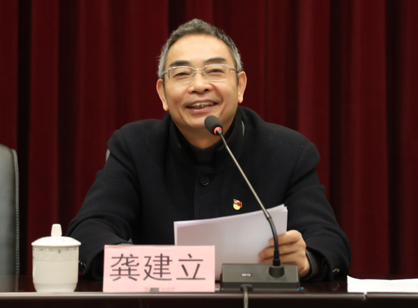 龚建立总结了学校主题教育开展以来的主要做法、取得成效和存在差距,对巩固和拓展主题教育成果、建立“不忘初心、牢记使命”长效机制、落实全面从严治党进行部署。他指出,在主题教育中,学校紧紧围绕学习贯彻习近平新时代中国特色社会主义思想这条主线,认真贯彻落实中央和省委部署要求,在省委第十二巡回指导组的指导下,结合学校内涵建设、多院一体、产教融合等重点工作,通过持续实施“两全两高两实”,高质量推动了主题教育向深向实