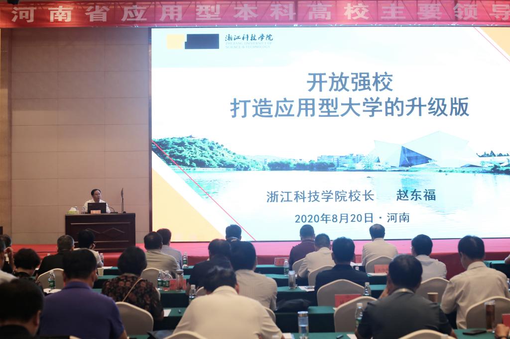 8月17日至20日,由河南省委组织部、省委高校工委、省教育厅主办,商丘师范学院承办的河南省应用型本科高校主要领导干部研讨班在河南省商丘市举行。河南省40所应用型本科高校党委书记、校(院)长,省委组织部、省委高校工委、省教育厅有关处室负责同志等110人参加。校长赵东福教授应邀为研讨班作《开放强校 打造应用型大学的升级版》的主题报告。