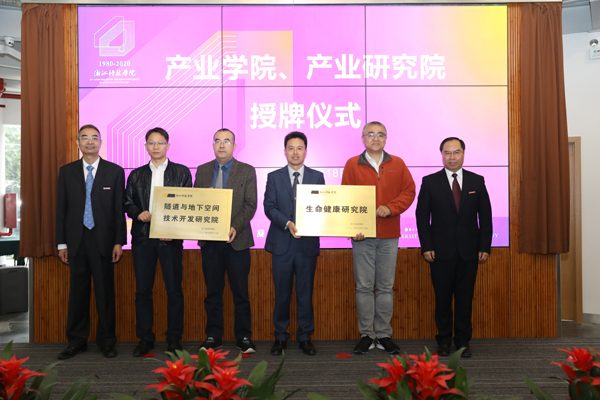 在上午举行的揭牌仪式上,工业机器人、人工智能、大数据、纸基材料等4个产业特色学院,机器人与智能制造、信息技术、隧道与地下工程、生命健康等4个产业研究院揭牌。杭叉集团股份有限公司、浙江国自机器人技术有限公司、福建中锐网络股份有限公司、杭州地铁集团设计部、中铁7局、浙江华康药业股份有限公司、金光集团、曙光信息产业股份有限公司等共建企业代表,相关职能部门、二级学院负责人、共建企业代表、学生代表参加活动。