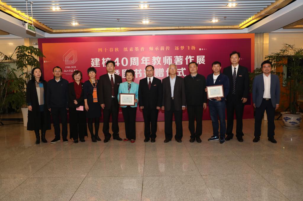 18日下午,学校举行简短而隆重的建校40周年教师著作展暨图书捐赠仪式。原校长沈莲清教授向学校图书馆捐赠个人著作。微笑明天慈善基金会向学校捐赠图书5000余册。赵东福向他们颁发了捐赠证书。