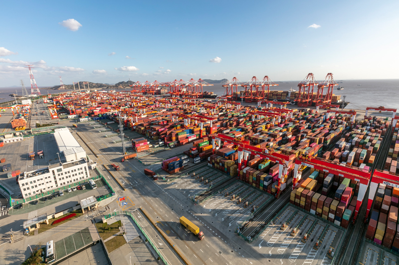 这是11月3日拍摄的上海洋山港集装箱码头。新华社记者 王翔 摄