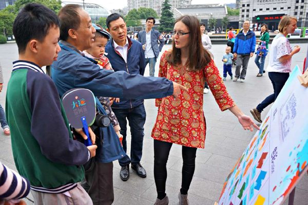 2016年上半年,应拱墅区宣传部的邀请,我校留学生热情助力G20峰会“英语角”志愿服务,他们向来往的杭州市民讲授国际交往英语100句,包括一些日常简短会话、旅游会话、杭州著名景点英文名称等。此外,志愿者们还会与市民进行互动小游戏,如英语连连看、英语九宫格等,帮助市民练习口语。我校留学生志愿活动深受市民的好评,杭州日报、浙江日报等媒体的竞相采访,洋雷锋们的身影还在浙江卫视、杭州电视台等电视媒体亮相。