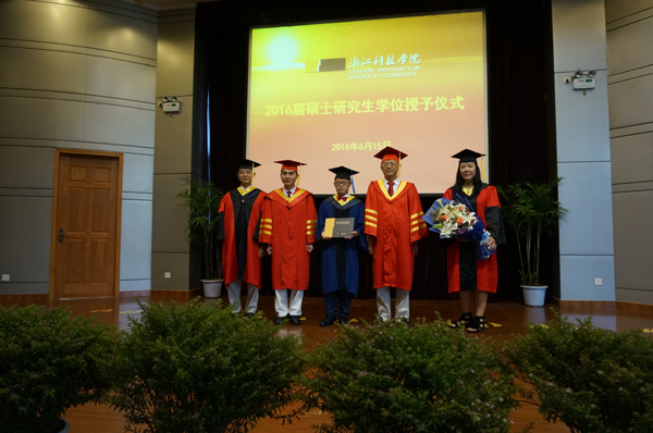 6月15日,2016届毕业生学位授予仪式举行。校党委书记王建华教授、校长叶高翔教授与毕业生合影留念。毕业生从校领导及校学位委员会成员手中领取自己的学位证书。
