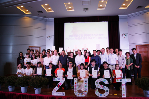 随后,在校KAB创业俱乐部成立十周年仪式上,团中央KAB全国推广办公室秘书长魏和平、团省委浙江青年创业学院院长薛华发来贺辞视频。郑友取、创业校友“同创汇”创业导师们分别为俱乐部的年度星光人物与十年来的杰出榜样人物颁奖。前不久,俱乐部在“寻访2016年大学生创业社团活动”中斩获“全国十佳创业社团”,取得连续五年获全国十佳社团称号的成绩。