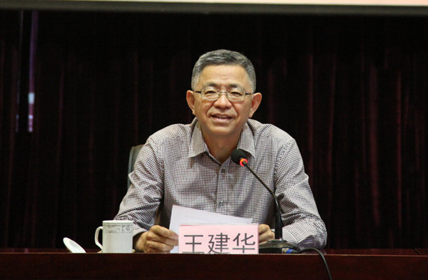 王建华对项怀诚一行的到来表示热烈欢迎,并简要介绍了我校基本情况。他指出桥牌在活跃大学校园文化、培养学生团队合作精神、提升人际沟通能力等方面都有推动作用。他希望广大师生珍惜这一次难得的机会,认真学习桥牌知识,传播桥牌文化。