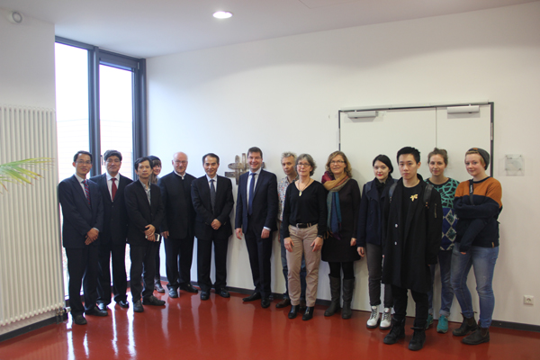 11月6日,校长叶高翔教授与汉诺威应用科技大学校长冯·赫尔顿教授在该校共同为“30年的成功合作——汉诺威应用科技大学和浙江科技学院”雕刻作品揭幕。雕刻作者于尔根·绍尔茨、我校“西湖友谊奖”得主彼得·布洛歇教授、汉诺威应用科技大学国际处处长比亚特·布吕玫及我校访欧代表团成员共同见证。