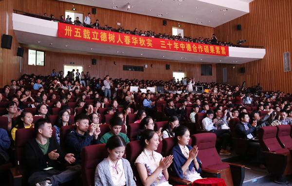 校歌发布仪式后,“同唱一首歌,共圆大学梦”大合唱比赛举行,安吉校区近千师生共同唱响《浙科大树》。