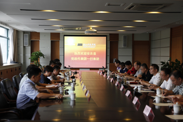 9月2日下午,湖州人大常委会副主任、安吉县县委书记单锦炎,安吉县委副书记、县长沈铭权,县委常委、宣传部长王有娣,副县长陆建卫、任贵明等率安吉有关部门负责人专程来校,商谈加强安吉校区(中德工程师学院)建设,全方位加强校地合作。校党委书记王建华、校长叶高翔等热情接待了单锦炎一行,双方展开了愉快、深入的座谈交流。校党委副书记周加敏,副校长、安吉校区管委会主任冯军,副校长单胜道、万健等出席座谈会。
