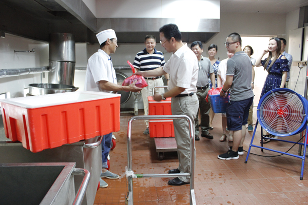 | 7月31日,校领导在职能部门负责人陪同下,分组走访慰问暑期坚守岗位的师生员工,向坚持工作学习的师生员工表示亲切的慰问,并送上防暑降温用品。 校领导王建华、叶高翔、周加敏、赵东福、郑友取、李泽泉等分两组来到小和山校区中和桥东侧上埠河蓄水坝工程施工现场、听松食堂及东和公寓改造工程现场、风雨操场工地、招生录取现场、学校门岗校园监控中心、食堂、实验大楼一楼等走访,与正在一线忙碌师生员工交谈。副校长冯军前往安吉校区慰问,走访了食堂、宿舍整修现场和工程实践中心等。 校领导指出,目前学校正处于为“大学梦”努力奋斗的关键时期,广大师生员工暑期工作学习“不松弦”,为大家扎实工作、追求卓越的精神点个“赞”。校领导说,暑期后勤和校园基本建设各项任务比较重,希望相关部门充分利用假期,保质保量完成工作,提升校园环境,为新学期师生工作学习提供良好条件。希望正在备战学科竞赛的同学脚踏实地,努力攻关,以优异的成绩为学校增光添彩。走访中,校领导特别叮嘱大家要注意防暑降温,劳逸结合。 新闻中心/文 学生记者 陈明诺 郑如娴 安吉校区后勤事务中心/摄 |