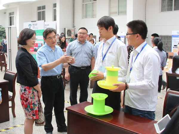 比赛期间,我校获奖作品受邀参加了“挑战杯”竞赛优秀成果展示会,省人民政府副秘书长李云林(上图左二)、团浙江省委书记周艳(上图左一)等亲临现场指导。李云林观看了我校“挑战杯”项目现场演示,予以高度肯定,鼓励我校学子积极投身创新创业,努力将发明创造推广到实际应用中。