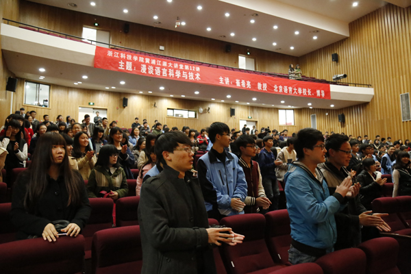 崔希亮以我国著名古文字学家、语言学家朱德熙先生的经历鼓励在场众多理工科学生,“理工科学生研究语言学有一定的优势。”朱先生原来学的是物理学,但因对语言感兴趣转而投入语言的研究,最终为我国语言文字作出卓越贡献。