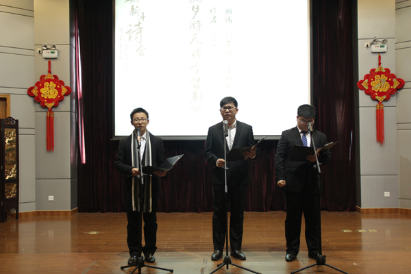 日前,由校大学生文化素质教育基地举办的“诵读国学经典 传承华夏文明2015新年诗会”举行。我校师生与来自浙江外国语学院、浙江传媒学院、浙江特殊教育职业技术学院的学生200余人参加。
