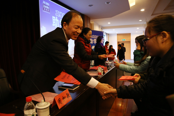 12月9日,2014-2015学年浙江省“真维斯大学生助学金”发放仪式暨公开课在我校举行。我校党委副书记周加敏、浙江省青少年发展基金会副秘书长张春燕,真维斯国际(香港)有限公司浙江口岸总经理孙雪君等出席。浙江理工大学学工部负责人、我校相关职能部门和二级学院负责人、辅导员、78名受助学生参加了真维斯助学金发放仪式。