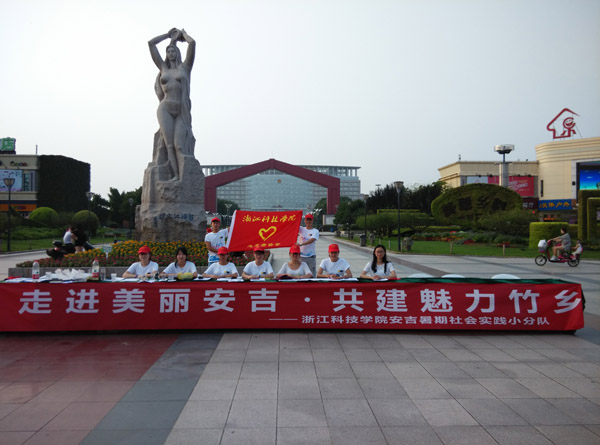 7月7日,校志愿者协会“美丽浙江,锦绣安吉”团队来到安吉,队员们以“感恩、关爱”和“五水共治”为主题,开展活动。