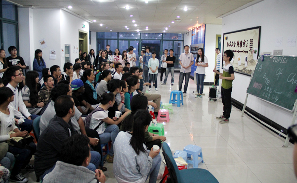 经济学(中美)132班朱乃俐在日常生活中是一个较为羞涩的女孩,但在英语角她却积极举手发言回答主持人的提问,她说自己很享受这种“free talk(自由讲话)”的感觉,希望寻求更多表达自己的机会。市场营销113班的胡俊铭同学自大一起就参加英语角,三年里他几乎场场必到。小组表演是他最喜欢的环节。与陌生搭档全英文交流,让他更加体会到语言本身的魅力。“碰到陌生的单词我就会立刻查阅,然后运用到对话中,所以现在虽然没有英语专业课了,我的词汇量还是不错的。”胡俊铭说兴趣是最好的老师。