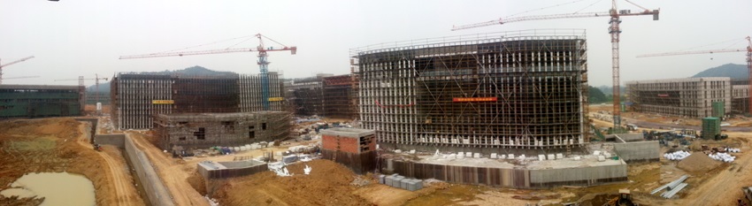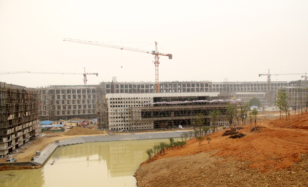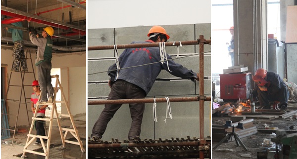 工程车辆来往穿梭,作业人员认真操作……安吉校区建设工地处处机声隆隆,建设热火朝天。目前,18幢主体建筑的粉刷、水电等室内装饰工程正在进行,建筑外墙石材、玻璃幕墙安装也在抓紧推进,室外管道等附属工程和景观、绿化等同步推进。办公生活家具、设备采购工作也全面展开。安吉校区建设正紧张有序推进。