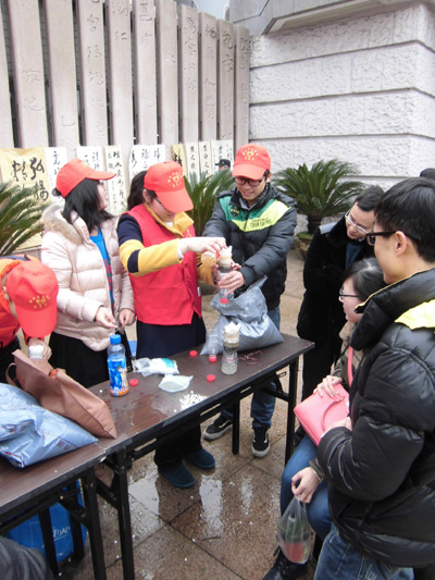 4日,我校志愿者参加了西湖区“弘扬雷锋精神,践行节约用水”为民服务日现场活动,志愿者发挥专业特长用科学小实验向市民展示如何节水、净水,循环用水(图1),受到市民欢迎。