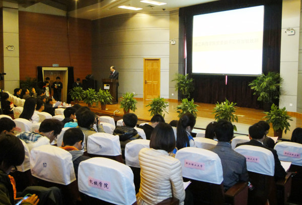 近日,以“弘扬雷锋精神,学习最美浙江人”为主题的2013浙江省大学生志愿者暑期社会实践成果汇报会在我校举行。省关工委副主任、原《浙江日报》总编江坪,省教育厅副厅级巡视员丁天乐,浙江在线管委会副主任徐文俊,团省委常委、学校部部长陈继胜,省学联副秘书长黄胜磊、省关工委办公室主任沈国华出席汇报会。校党委副书记周加敏到会并致辞。汇报会由沈国华主持。