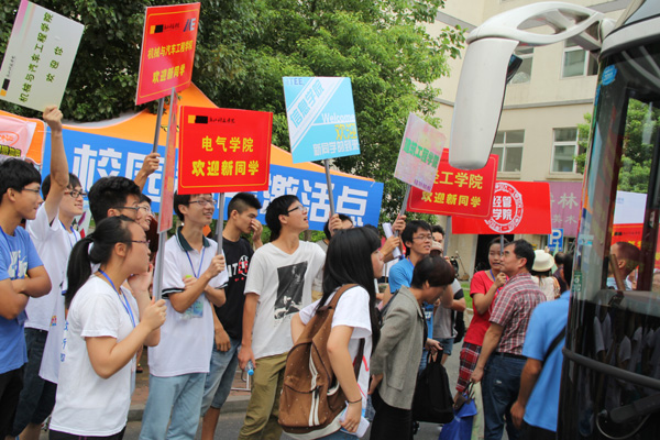 巧合的是,制药专业的李佳萍也是被一个10人亲友团护送来的。他们开了两辆车,前两天就到杭州了。小姑娘自嘲:“从前住校,爸妈一起送我就算待遇了,这次来了这么多人,怪不好意思的!”“以前住校离家又不远,现在上大学,总想陪你来嘛,顺便大家一起在杭州玩两天。”李妈妈抢着说,“还好绍兴离杭州也不远,想家了就能回。”一句话露出了母亲对女儿的不舍与担忧。