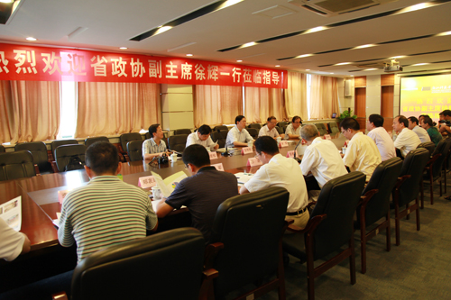 校党委书记王建华代表学校向徐辉一行汇报了学校办学特色、师资队伍建设、学科专业建设、校企合作、国际合作、现代大学制度建设等方面的情况。他同时就学校紧紧盯住内涵式发展,加快改革步伐中遇到的相关问题也作了汇报。