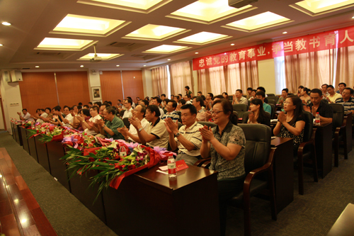 9月10日,学校隆重召开庆祝第28个教师节暨先进表彰大会。学校领导出席会议。会议在学生合唱队为老师们送上的悠扬歌声中开始。会议由校党委副书记陈根芳主持。