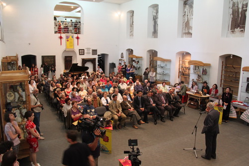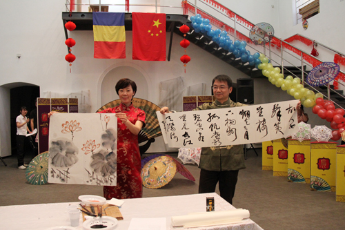在民俗博物馆,孔子学院和中国驻罗马尼亚大使馆共同举办了《中国传统丝绸扇伞展》,观众们无一不为精妙绝伦的中国双面刺绣技法所倾倒。我校艺术学院师生代表团及孔院师生等还准备了精彩的文化表演。克鲁日市副市长LASZLO先生、克鲁日市政府高级顾问VUSCAN先生,中国驻罗马尼亚大使馆教育处负责人卞正东先生、中罗友好协会主席DOBTICA先生、民俗博物馆馆长等出席活动并发表了讲话。
