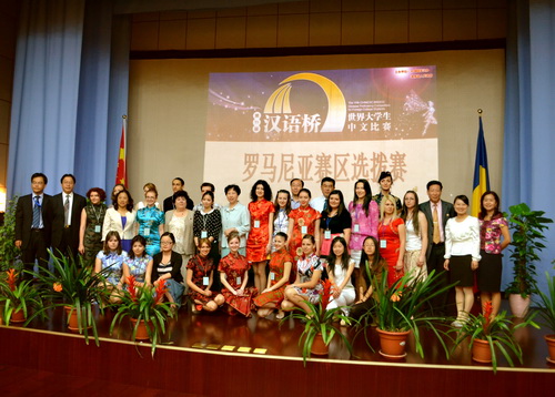 中国驻罗马尼亚大使霍玉珍女士参加并观看了此次“汉语桥”比赛,并在赛前发表讲话。来自布加勒斯特大学、雅西扎库大学、锡比乌孔子学院、布拉索夫孔子学院、克鲁日孔子学院的20名选手参加了比赛。
