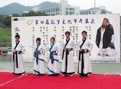 10月28日,第四届孔子文化节开幕式举行。相关部门负责人及校级学生社团负责人、各二级学院学生及留学生代表等参加了开幕式。