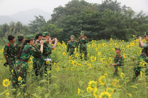 这两天,不少军训新生三五成群来到向日葵地,西蜜湖畔,与向日葵、白鹭合影,把自己的飒爽英姿和学校美景发回家。浙江日报对这一活动作了报道(http://zjdaily.zjol.com.cn/html/2011-09/13/content_1082541.htm?div=0)。