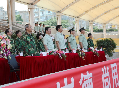 9月6日下午,2011级学生军训动员大会在学校田径场隆重举行。校党委副书记陈根芳、副校长赵东福出席动员大会。武警杭州士官学校副校长王作才和我校相关职能部门负责人、二级学院党总支负责人以及2011级新生参加了大会。