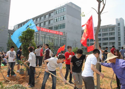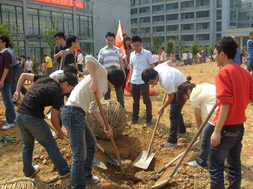 陈根芳和教师代表与300多名毕业生代表一起在习得园北侧栽下了20棵香樟树、20棵桂花树,以此表达2011届全体毕业生对母校的感激和无限留恋之情,纪念大学四年的难忘时光。