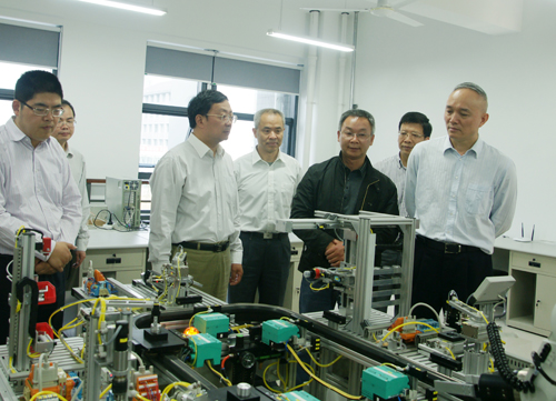 汇报会前,蔡奇一行参观了校园和实验中心。