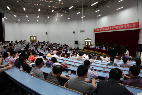 4月26日,学校召开中层干部换届动员大会,本次中层干部换届工作正式启动。校党政班子成员及正院级巡视员出席会议。处级干部、院(处)长助理、主任助理,正高职称人员,教代会执委会成员,民主党派、知联会、留联会负责人,离退休老同志代表,省级、校级学科带头人,博士,各分工会主席,二级单位内设机构负责人各党总支、直属党支部委员,党代会、教代会代表参加会议。会议由校党委副书记周加敏主持。