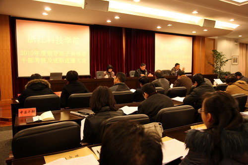 1月18日,学校召开2010年度校党政领导班子和领导干部考核及述职述廉大会。省委组织部干部三处副调研员应方彩,省委教育工委干部处副调研员王永芬等出席了大会。校党委书记徐志平主持会议,校党政领导班子成员、正院级巡视员、中层干部、教代会执委会成员、正高职称人员、民主党派负责人、老领导代表等参加了会议。