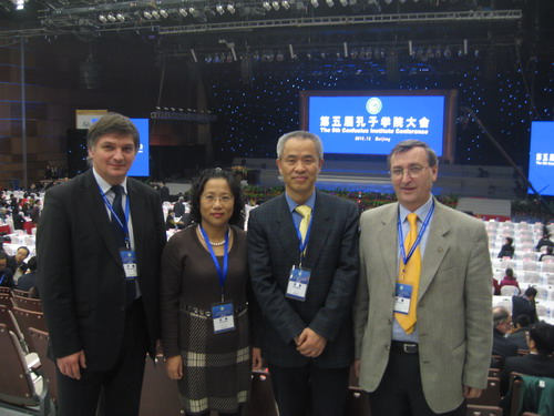 10日至12日,吕进还参加了在京举行的第五届孔子学院大会。与会代表交流了孔子学院建设经验,探讨提高办学质量。我校与罗马尼亚克鲁日巴比什-波雅依大学合作的孔子学院中方院长冯少中也应邀参加了此次会议。会上,冯少中老师被国家汉办总部评选为2010年孔子学院先进个人。
