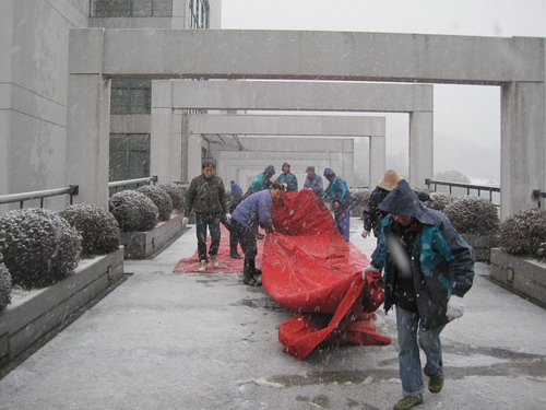 12月15日,杭城下起了今冬第一场雪,从早上7点多到深夜,大雪一直未停。截至当晚8点钟,杭州市区积雪已经达到9厘米,为历年罕见。为确保师生正常的工作、学习、生活,校内各单位积极行动起来,防范雨雪冰冻造成的危害。