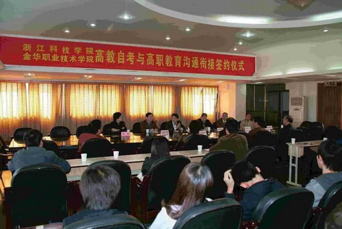 11月9日,副校长赵东福率艺术学院和成教学院负责人前往金华与金华职业技术学院签订“共建艺术类自考助学基地”协议。金华职业技术学院副校长郑布英,该校艺术学院和金华市自考办相关负责人参加签约仪式。