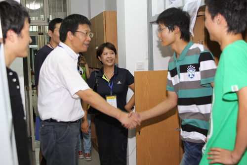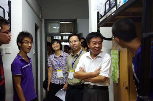 在寝室,校领导与新生亲切交谈,了解他们到校后的感受。校党委书记徐志平叮嘱新生,要认真规划四年的大学生涯,过好生活关、学习关,做一名“学以致用,全面发展”的合格大学生。今年我校新生中有近百名少数民族同学,分别属于16个民族,走访中,每逢遇上少数民族同学,校领导都仔细询问他们的民族风俗,了解他们的生活要求,校领导叮嘱后勤部门,要尊重少数民族同学的生活习惯,照顾好他们的饮食、起居等。对来自甘肃、四川等灾区及灾区周边的同学,校领导鼓励他们自强自立,要相信学校、老师和同学会尽力帮助他们。遇到还没离校的新生家长,校领导向他们介绍了学校情况,告诉家长,学校每一名教职工都会把学生当作自己的孩子一样对待,请家长放心。