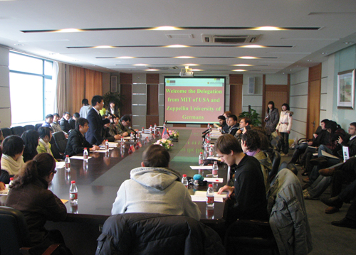 日前,美国麻省理工学院和德国泽普林大学代表团一行20余人来校访问,美、德的大学生与我校大学生KAB创业俱乐部成员共同组织了一场精彩的“中、美、德大学生创业交流会”,三国学生就创业及创业教育进行了广泛而深入的交流。大学生们除了介绍各自学校学生创业发展现状外,还在workshop互动环节中,以头脑风暴的形式通过营销策略销售同一款会计软件,感受不同社会文化下学生创业理念与思维的差异。